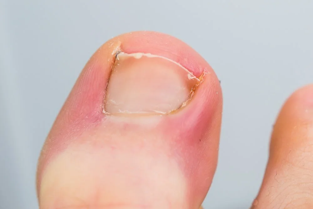 An ingrown toenail occurs when a corner of the nail grows into the flesh of the toe, causing redness and swelling, followed by pain and often infection. Ingrown toenails can occur due to improper trimming of the toenail, trauma or genetic factors.